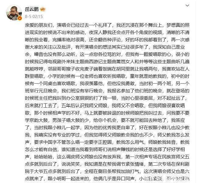 还有一条路,就是把 相声 捡回来,虽然挺难,但不是没有先例。张云雷前段时间被骂得特别厉害,直接没声了整整一年,整天泡在小剧场练基本功。现在回归后,演《大保镖》《汾河湾》那些戏,感觉特别稳当顺畅,观众们要么鼓掌,要么叫好,反应都挺热烈的。岳云鹏要是打算从明年起把演唱会都搁一边,不如一年时间搞上两百场小剧场,春晚彩排啥的也都参加,嗓子、腰、腿都能重新练个底朝天,三年下来,口碑还能重新树起来。